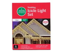 Clear Twinkling Icicle Light Set With White Wire, 200-Lights
