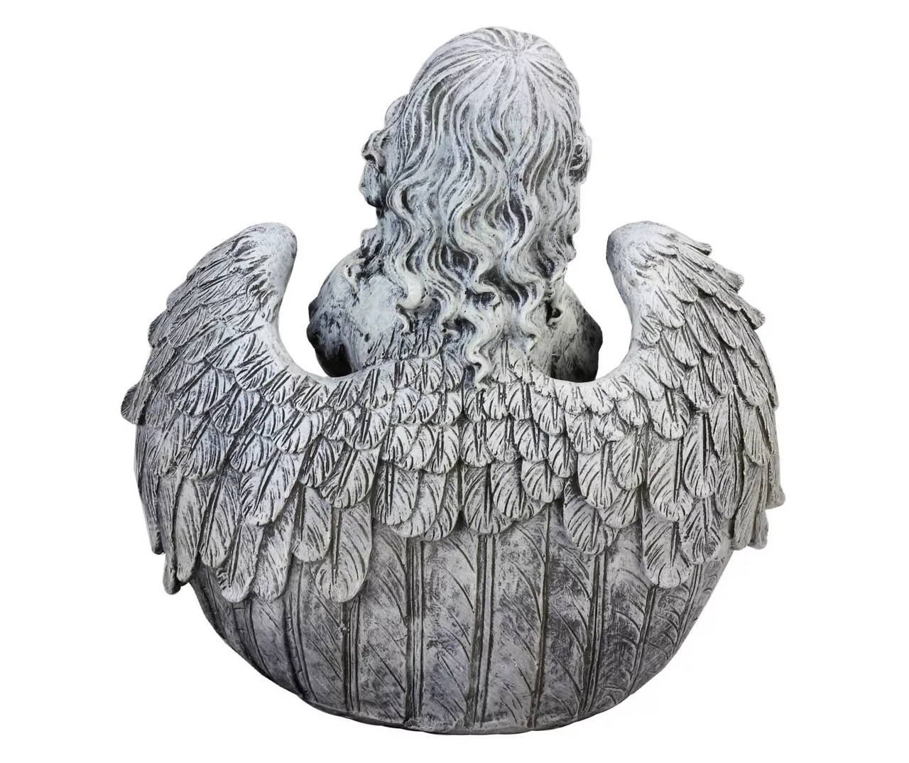 - Sculpted with a kneeling angel wrapped in wings