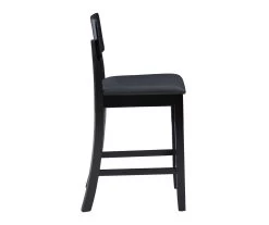 Pull up this stool to your counter for a great place to sit. It features a rich, black neutral finish and goes well with almost any décor. Its padded vinyl seat and back are covered in a wipe clean faux leather. The clean lines and solid construction ensure that this stool is a great choice for your home.