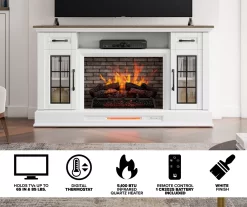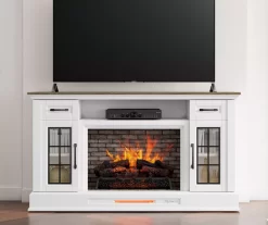 60″ White 2-Door Electric Fireplace Console