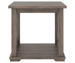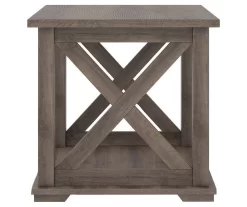 Raise the bar on modern farmhouse design with this essential end table. Sporting a handsome weathered oak effect and cross buck design, this table makes a statement wherever it lands. With its generous shelved storage space, this home essential is packed with possibilities.