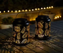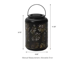 This classic solar lantern with delicate leaf cut-outs creates intriguing graphic shadows, adds artisan beauty and flickering drama to your outdoor space. Bright warm white LED lighting charges throughout the day to automatically turn on at night and off at dawn. Designed with a handle for easy carrying and hanging, this lantern is a beautiful addition to a porch, patio or garden.