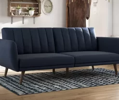 Brittany Navy Blue Linen Convertible Sleeper Futon
