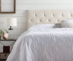 Create a chic modern look for your bedroom with this Brookside Emmie headboard. Built with sturdy and sustainable Siberian Larch wood and finished with a durable linen-inspired fabric, this headboard is the epitome of class and function. The headboard is complete with buttonless diamond tufting details for an elegant touch to your bedroom.