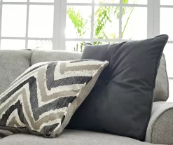 - Throw pillows feature solid and zigzag patterns in brown, tan and white tones