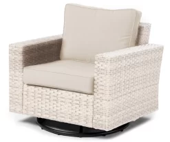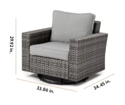 Escape to your favorite outdoor space with the Broyhill Eagle Brooke swivel glider. This elevated chair features a powder-coated steel frame wrapped in decorative handwoven all-weather wicker in a two-tone brown look. Offering swiveling and gliding motion with a cushioned seat and back, this wonderful chair is perfect for your patio, deck or porch.