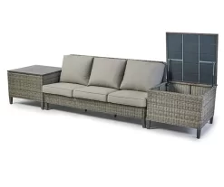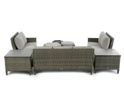 - Includes outdoor sofa with cushions, 2 loveseats with cushions, 2 side storage tables and 3 ottomans