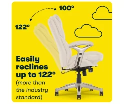 Help promote strength and flexibility in your back while you work with the Serta Back in Motion Executive Office Chair. This ergonomic office chair helps users become more productive and efficient by maximizing lower back support and comfort while seated. Its unique Back in Motion Active Seat Technology swivels the lumbar forward, providing the same effects as a pelvic tilt exercise by promoting spinal movement and flexibility in your core. Push-button adjustable armrests and pneumatic height adjustment allow the leather office chair to be quickly and easily customized to find the right fit for you. The multi-layered cushions are soft yet supportive, so you’ll feel refreshed even after a long day.