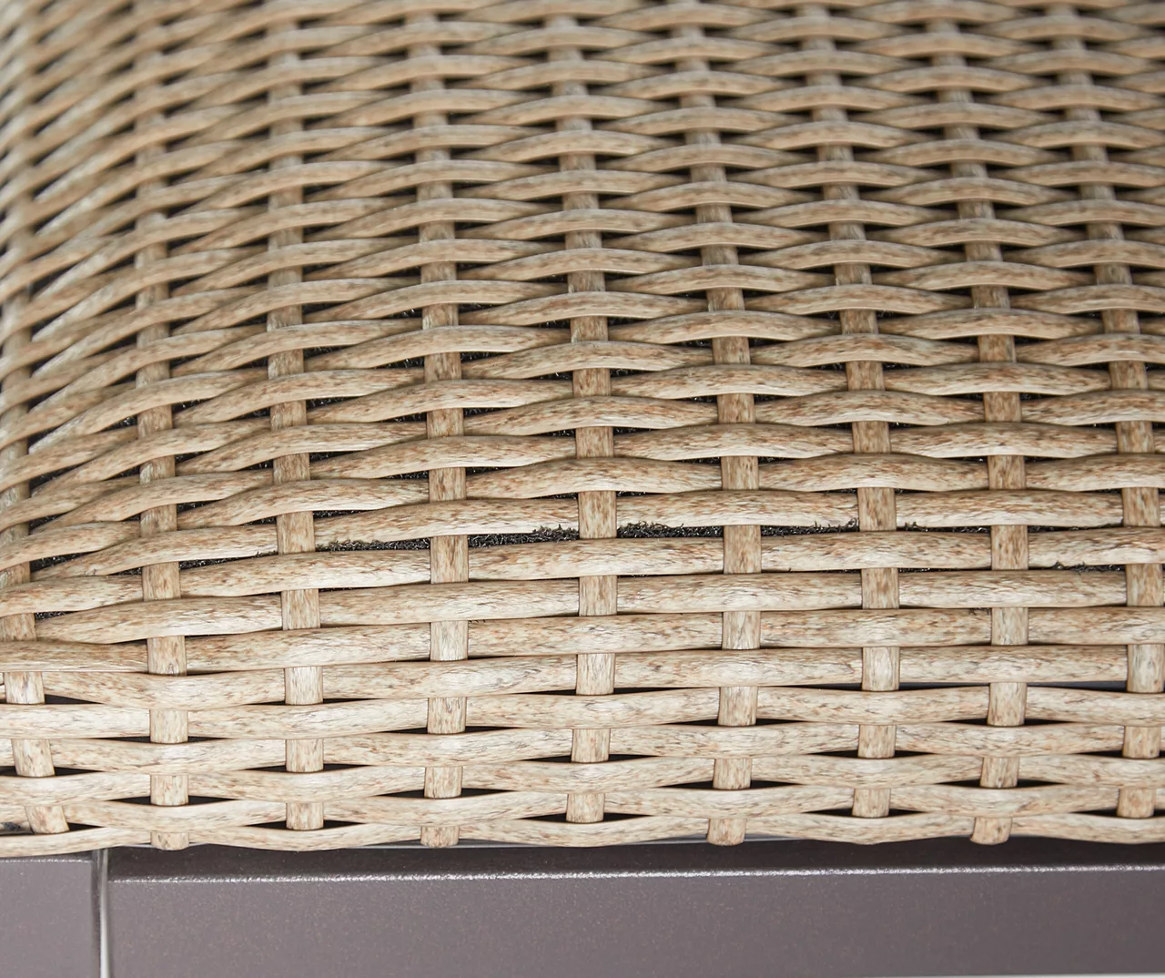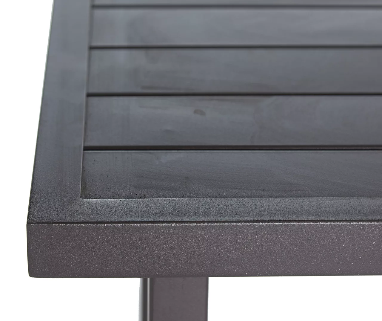 Turn any outdoor space into the perfect spot for get-togethers with the Cobblestone Lane bar table set. A slatted steel table is perfect for snacks, drinks and more as you gather with friends and loved ones on the four stylish bar chairs made with all-weather wicker seats. This seating set will make your home the go-to for any future outdoor hangouts on the patio or deck.