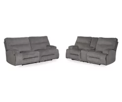 This reclining sofa from Ashley makes it hip to be square. Its brilliantly boxy profile and wide track arms infuse a highly contemporary look you don’t often find in reclining furniture. Rest assured, the trendy charcoal-tone upholstery is sumptuously soft and made all the more enticing with deep channel tufting for clean-lined flair, making it a great addition to a living or family room.