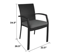 Cosco’s Lakewood Ranch steel and resin wicker cushioned dining chairs are the perfect chairs to bust out when friends and family visit. These chairs are constructed with a strong steel frame for extra support and durability, wrapped in resilient black resin wicker. The plush charcoal seat cushions are covered in a woven breathable fabric which, along with the frame, is durably made to last while being easy to clean and maintain.