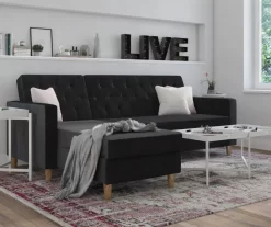 You simply need this CosmoLiving Liberty sectional futon with storage. It’s simple, stylish and the perfect small space solution with its compact design and functional features. Designed with delicately crafted diamond tufting and brass legs for a flawless Instagram-worthy look, the chaise can be configured to set up on either side of the futon and the wide storage compartment is perfect to hold off-season clothing (or that laundry you needed to do, like yesterday). The adjustable back allows you to recline to kick it comfortably or lie flat for the best night sleep you never had.