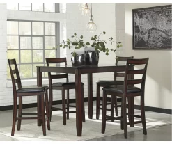 This counter table set raises the bar on how beautiful simplicity can be. A wonderfully clean-lined profile is dramatically enriched with a complex, burnished finish loaded with tonal variation and rustically refined character. Cushioned bar stools in a practical faux leather take a classic ladderback design to a new level of comfort.