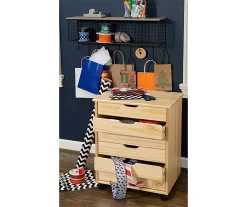 Blending versatility with simple, classic lines, this storage cart makes organizing any busy home or office a breeze. Six equally sized drawers offer ample space for craft supplies, toys or accessories while wheeled casters ensure easy mobility around the space. The natural wood finish brings warmth and visual interest to the piece. Drawers are removable for added convenience.