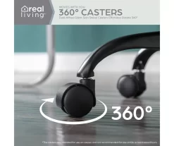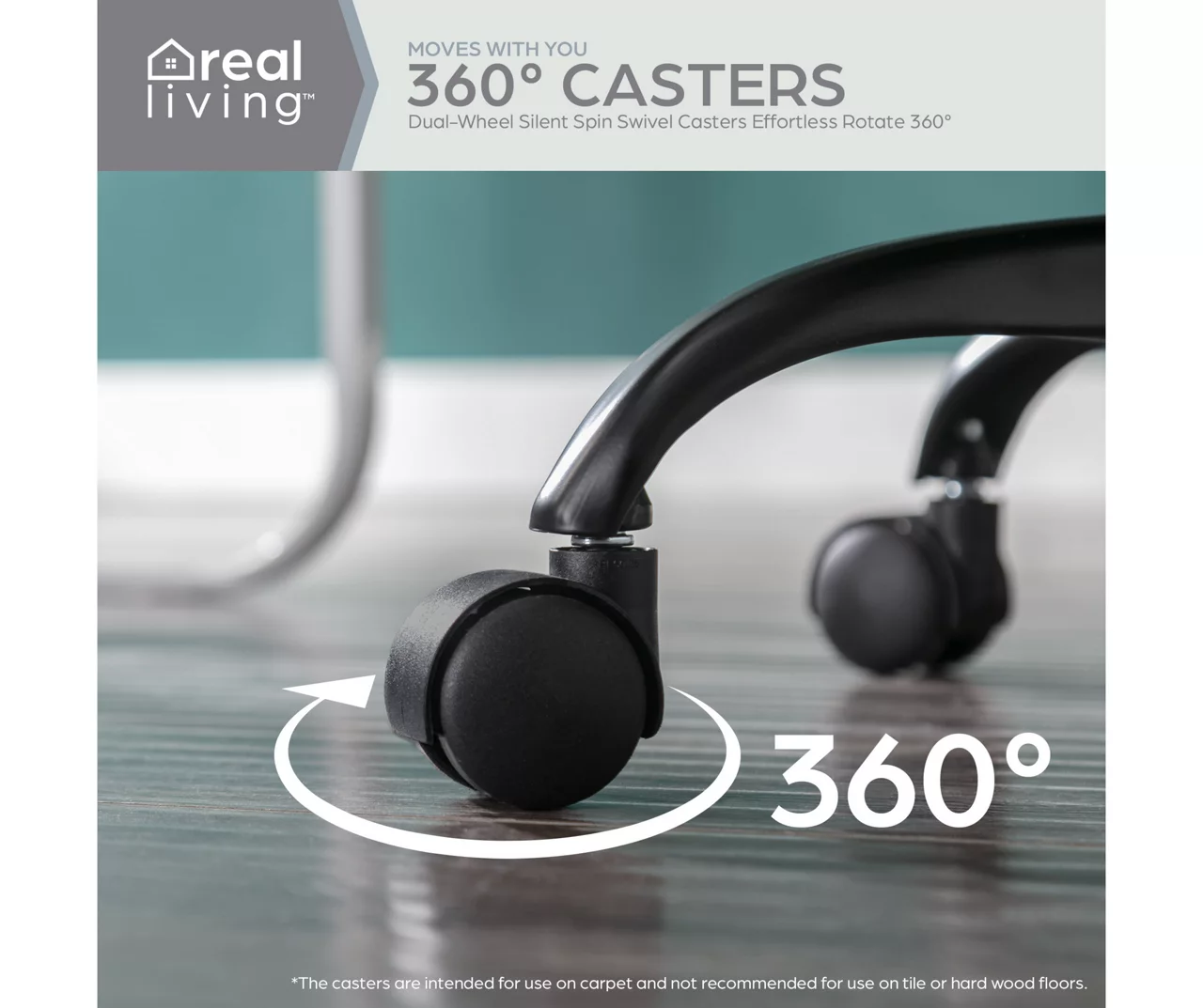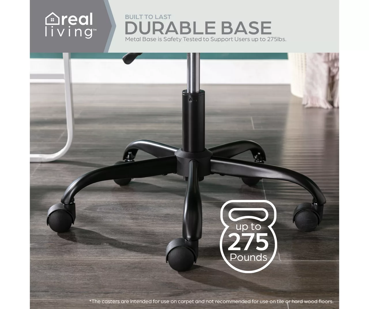 Work and play in modern style with this office chair from Real Living! Upholstered with soft faux wool boucle fabric in a cream white color, this armless desk chair is equipped with a 360° swivel seat and caster wheels along with an adjustable height. It’s perfect for daily tasks and work sessions in a dorm, home office or study.