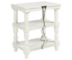 With its antique white finish, plank-effect styling and charming turned details, the Dannerville accent table is sure to elevate the look and feel of a room. Whether you embrace traditional décor or fancy modern farmhouse style, this three-tier table will look right at home. And with USB device charging, this accent table is right up to speed with your high-tech lifestyle.