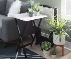 - Material: Faux marble paper, MDF, rubberwood, wood