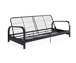 - Sturdy metal frame features 2 extra legs at the back of the seat for additional support and 2 retainer clips that prevent the futon mattress from sliding off
