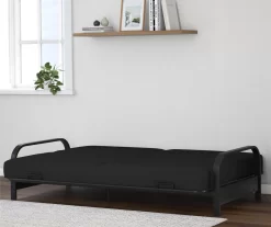 Contemporary and clean, you can never go wrong with the DHP Elbern futon. Whether you’re looking for the perfect furniture piece to decorate your small space living room, guestroom, den or home office area, the Elbern takes space saving style to the max by letting you simply lower the backrest to turn it into a practical guest bed. Displaying a stylish curved slope on the arms of the sturdily built metal frame, its strong construction includes two front retainer clips that prevent the futon mattress from sliding off and center legs for added sitting, lounging and sleeping stability. The included pocketed microfiber fabric slipcover fits the provided futon mattress pads to a tee and feels soft to the touch.