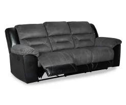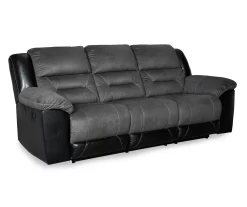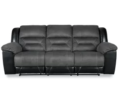 Every day is a good day with this reclining sofa from Ashley around. Take a load off and forget your worries as you ease back into the luxurious feel of suede-like fabric. Faux leather covers the outside parts for an elevated look. Need more comfort and support for your body? Cue the deep seating and tall back. Contrast jumbo stitching adds an element of style to the cushions and helps make this a great addition to your living or family room.