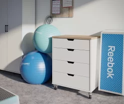 Evolution Vantage White & Weathered Oak 4-Drawer Storage Cart