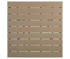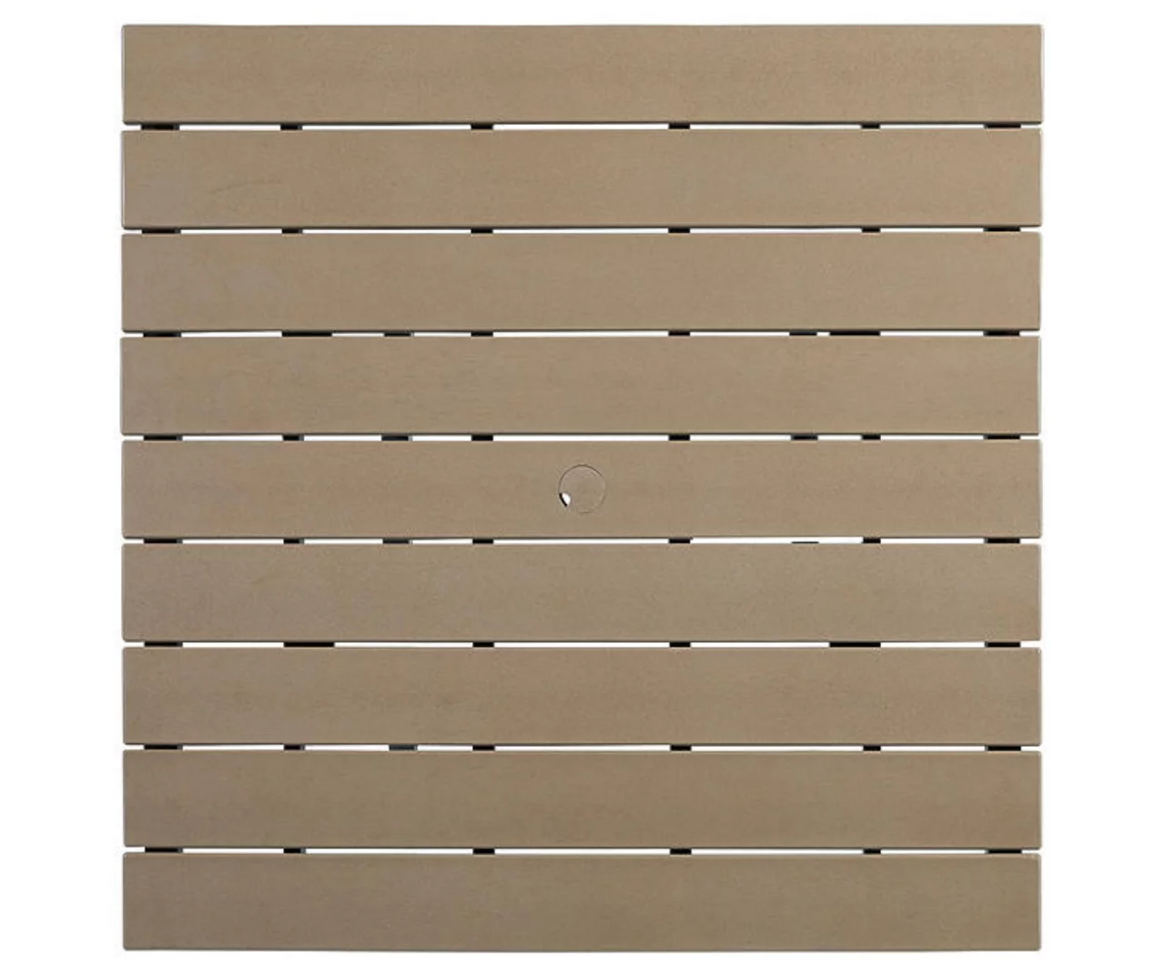 - Slat-style top with center hole for an umbrella
