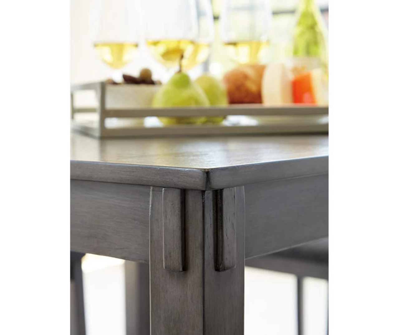 - Includes counter-height dining table and 4 bar stools