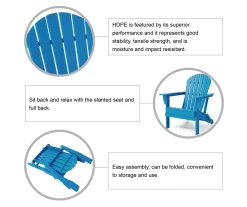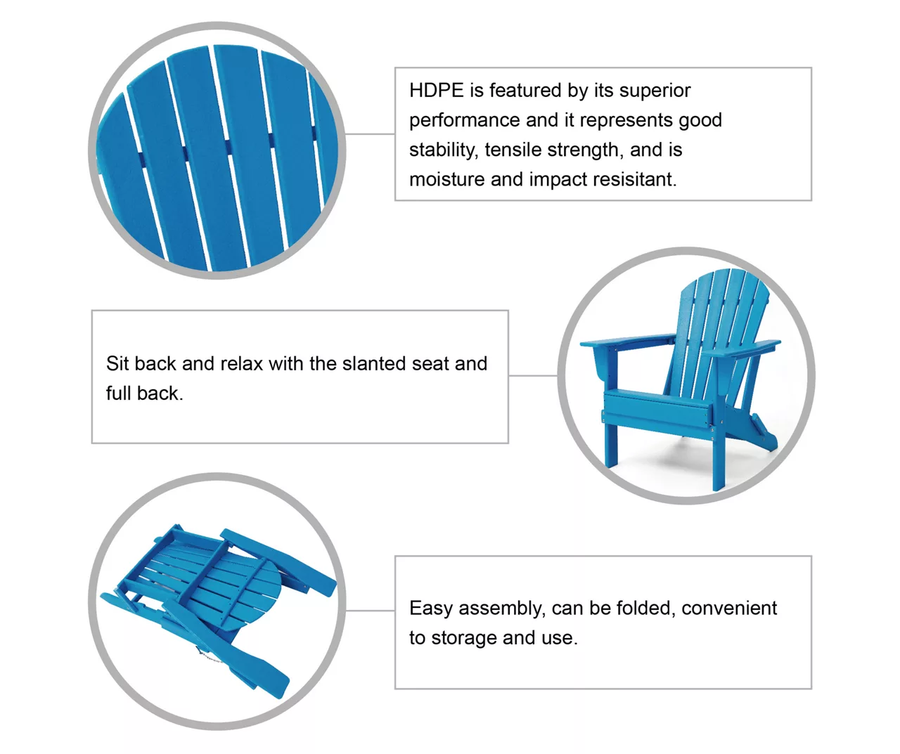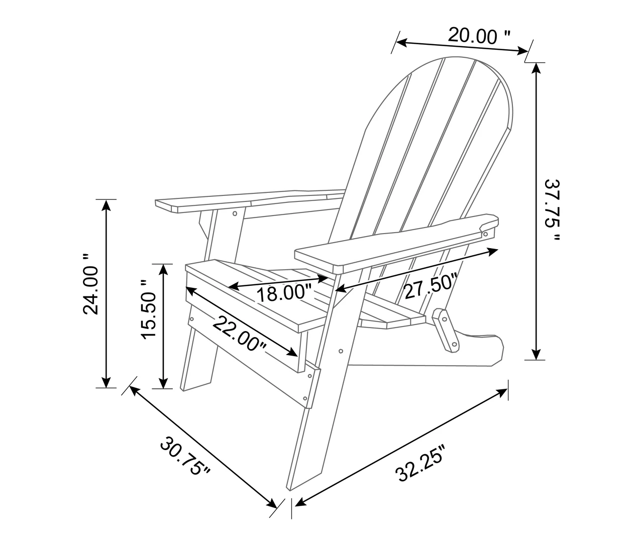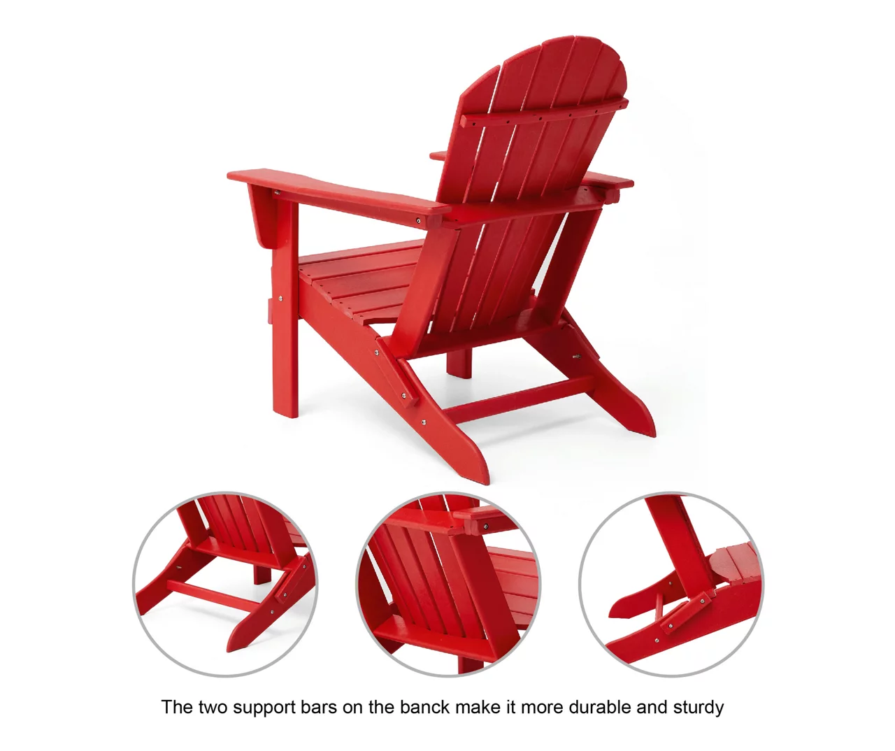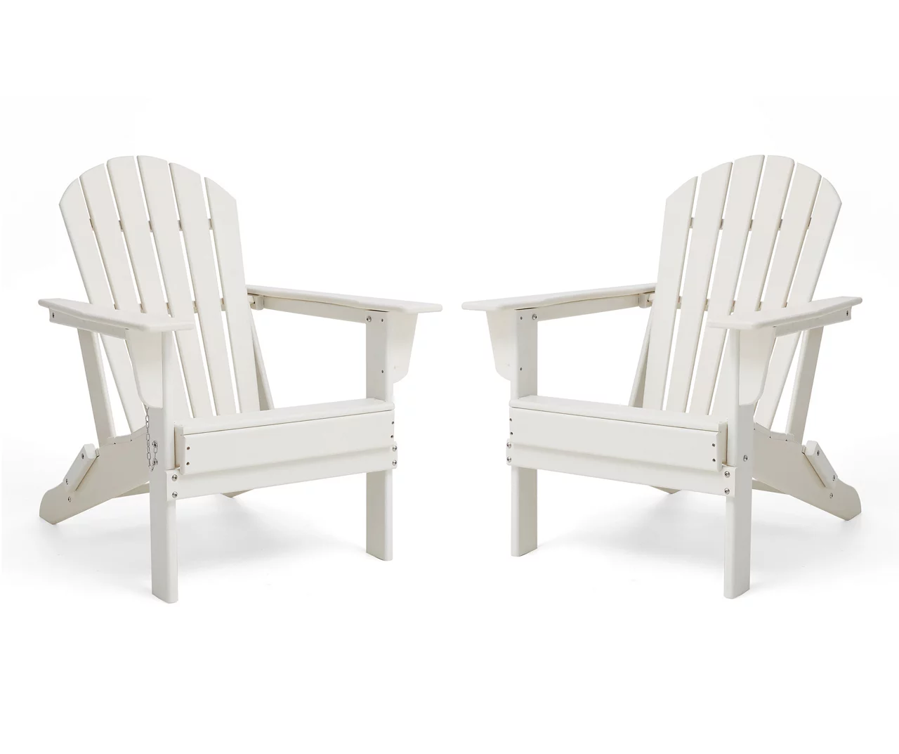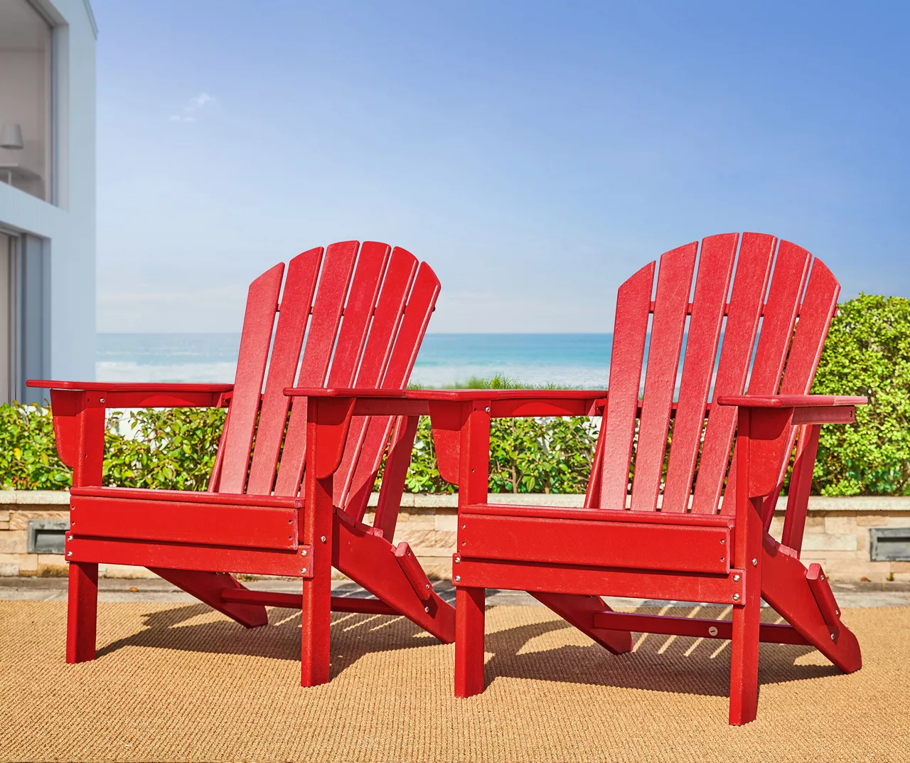 This set of two Adirondack chairs lets you enjoy casual conversations and happy hours with friends in your outdoor space. Each chair is constructed of durable and all-weather resistant high density polyethylene, making them easy to clean with little maintenance. The folding design of the chairs are great for when you need to take them on the road as slanted seating and full backs hug you in comfort. This versatile folding Adirondack chair set is perfect for your patio, porch, poolside, garden, backyard or any other outdoor space!