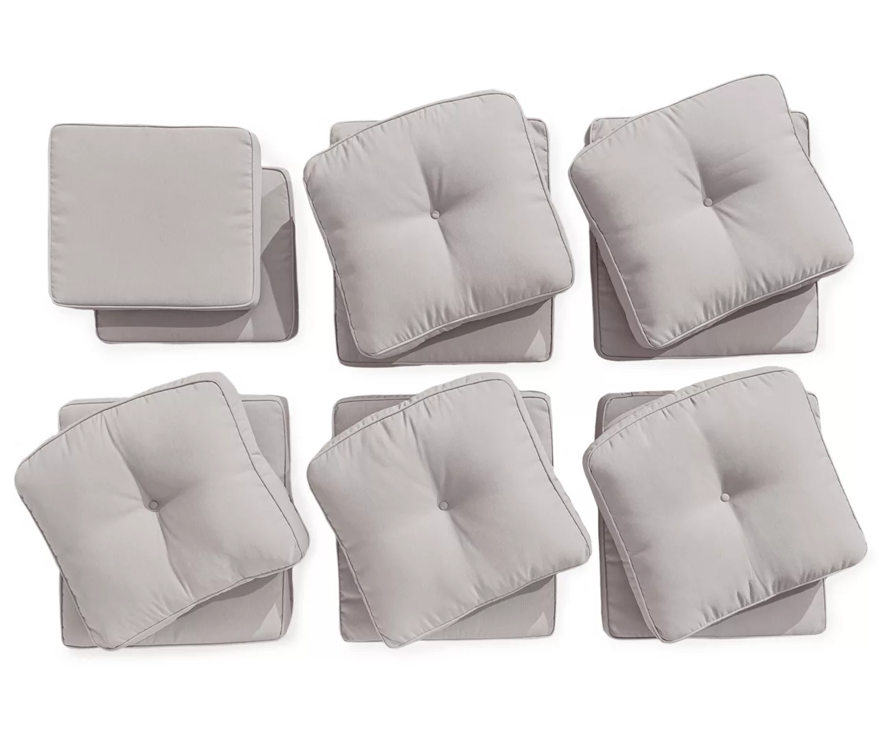 Upgrade your outdoor seating arrangement in wonderful color and comfort using this replacement cushion set. Upholstered with stain and weather-resistant fabric in a neutral gray hue, these seat, back and ottoman cushions help you maintain your favorite relaxation spot on the patio, deck or porch.