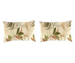 - Pretty tan outdoor throw pillows with a neutral-colored leaves design
