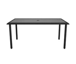 Cosco’s Lakewood Ranch steel and wicker patio dining table is a tempered glass-topped table large enough to fit up to six chairs. Durable and easy to clean, this table is constructed with a strong steel frame for extra support and durability. That frame is then wrapped in resilient black resin wicker to create a stylish look. This table also includes an umbrella opening, built to accommodate your umbrella (sold separately) for those bright, sunny days. Sit down and enjoy dinner with your friends with the Cosco Lakewood Ranch dining table.