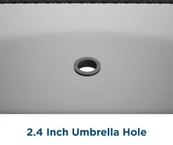 - Standard 2.4″ umbrella opening and cap will allow most standard outdoor umbrellas (umbrella sold separately)