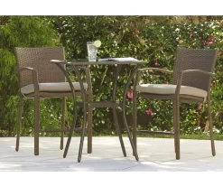 - Includes 2 outdoor bistro dining chairs with cushions and table