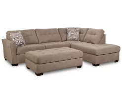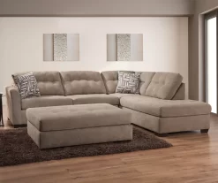 This Pasadena ottoman gives everyone a place to kick their feet up in any living area. Upholstered in a plush textured microfiber, the neutral tan fabric features a unique top stitch detail for added interest. Constructed with a cushioned top, it’s great for using as a footrest or as an extra seat in front of the TV.