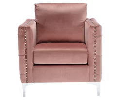 - Contemporary accent chair upholstered in blush pink velvet polyester
