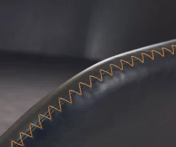 - Faux leather upholstery in an navy blue color