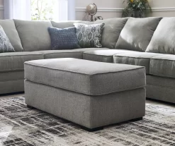 - Upholstered in a soft, yet durable neutral gray chenille fabric
