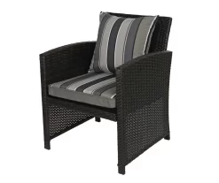 Extend the comfort of your outdoor chairs using this cushion set. Offering a two-in-one look with a stripe pattern on one side and a solid hue on the other, the seats feature gusseted sides and bonded polyester fill as the pillow backs offer style with a knife edge finish. Complete with contrasting piping and high performance solution dyed polyester fabric, these cushions are perfect for upgrading a chair on your porch, patio or deck.