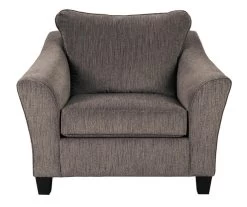 The Nemoli oversized chair sets the scene for a modern space full of casual flair. In the on-trend slate color, its textured chenille with solid microfiber upholstery provides a luxuriously soft feel that’s inviting. Gently flared arms and plush seat cushions welcome comfort and relaxation — what a cozy addition for any room.