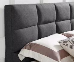 - Premium fabric upholstery in dark gray