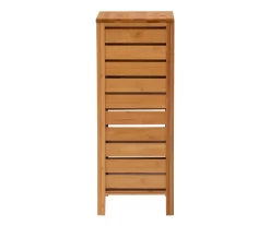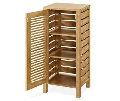 Hide away your necessities in style using this wonderful Pierce floor cabinet. A single slat panel door opens to reveal three interior shelves that provide ample storage for towels, books or accessories. Constructed from solid bamboo with woodgrain accents, this cabinet is perfect for the bathroom, kitchen or living room.