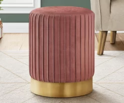 - Upholstered in a plush dark pink velvet fabric with pleated sides