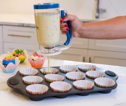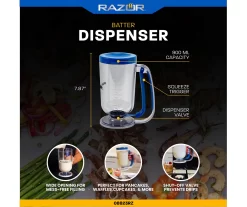 Perfect for pancakes, waffles, cupcakes and funnel cakes, the Razor batter dispenser is your go-to tool when you need just the right amount. The wide opening allows mess free filling without any spills and the easy shut off valve helps you measure exactly how much batter you need with a simple squeeze. With a sizable 900 mL capacity, you can’t go wrong with this one.