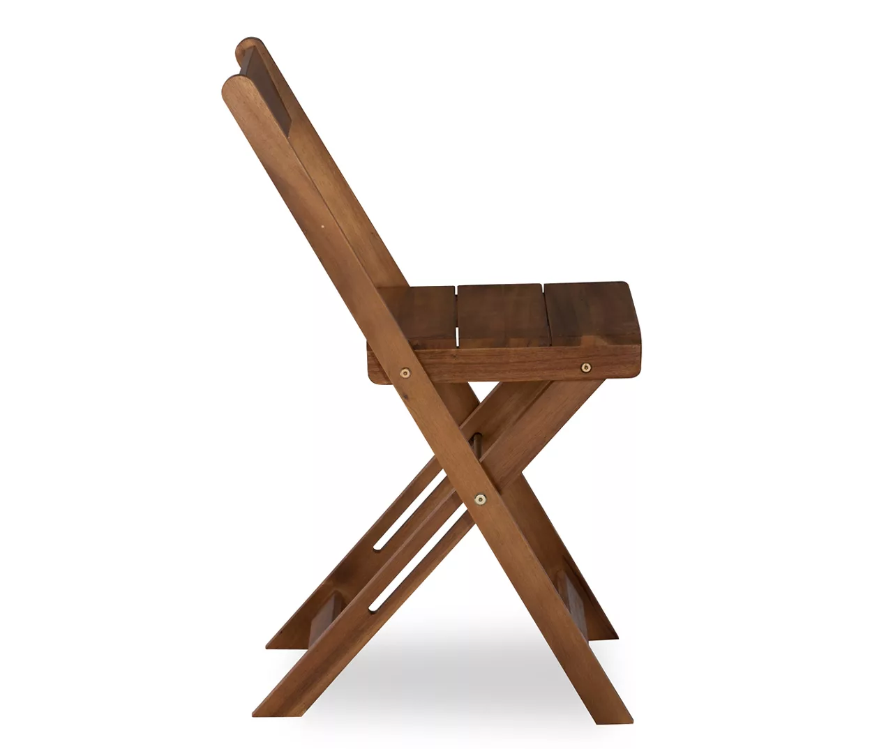 Bring that extra level of style to your patio, deck or porch with the Sea Grove three-piece furniture set. Made from durable and stylish acacia wood, this set boasts a lovely brown finish that easily complements many different kinds of décor. And, because its two included chairs are foldable, storage is easy and simple.
