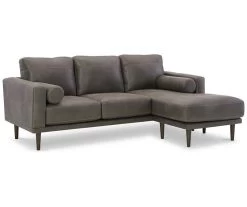 For a fresh spot in your space, turn to the Arroyo sofa chaise. This invigorating piece breathes warmth into your home with its striking caramel faux leather upholstery, modern bolster pillows and tapered legs. Wind down at the end of a long day and sink into this canyon of comfort.