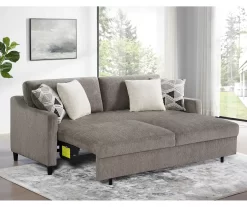 Sure to adapt beautifully to various interior styles, the Stockton convertible sleeper sofa by Broyhill is the perfect addition to your living room or family room. Unlike traditional sleeper sofas, this convertible sofa has a unique pop-up feature that extends the sofa’s length for lounging or can be used as a sleeper with no mattress required. The sleek silhouette has clean lines, track arms and a chenille-feel fabric that is soft to the touch. It is the perfect choice for comfort and functionality.