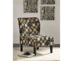 Create a modern sanctuary with this sleekly designed accent chair. The Tibbee from Ashley features decorative circle prints with a contemporary design. The slipper chair back paired with armless construction and stylish black legs add flair to make any room pop.