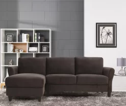 The Waverley sectional is crafted with top quality hardwood frame, high density foam cushions and a coffee upholstery microfiber fabric. Expertly tailored cushions with gently rolled arms reveal a soft silhouette that complements any décor. Perfect for the home, the Waverley provides comfort with a clean updated look that will please the demands of style and quality seekers alike.